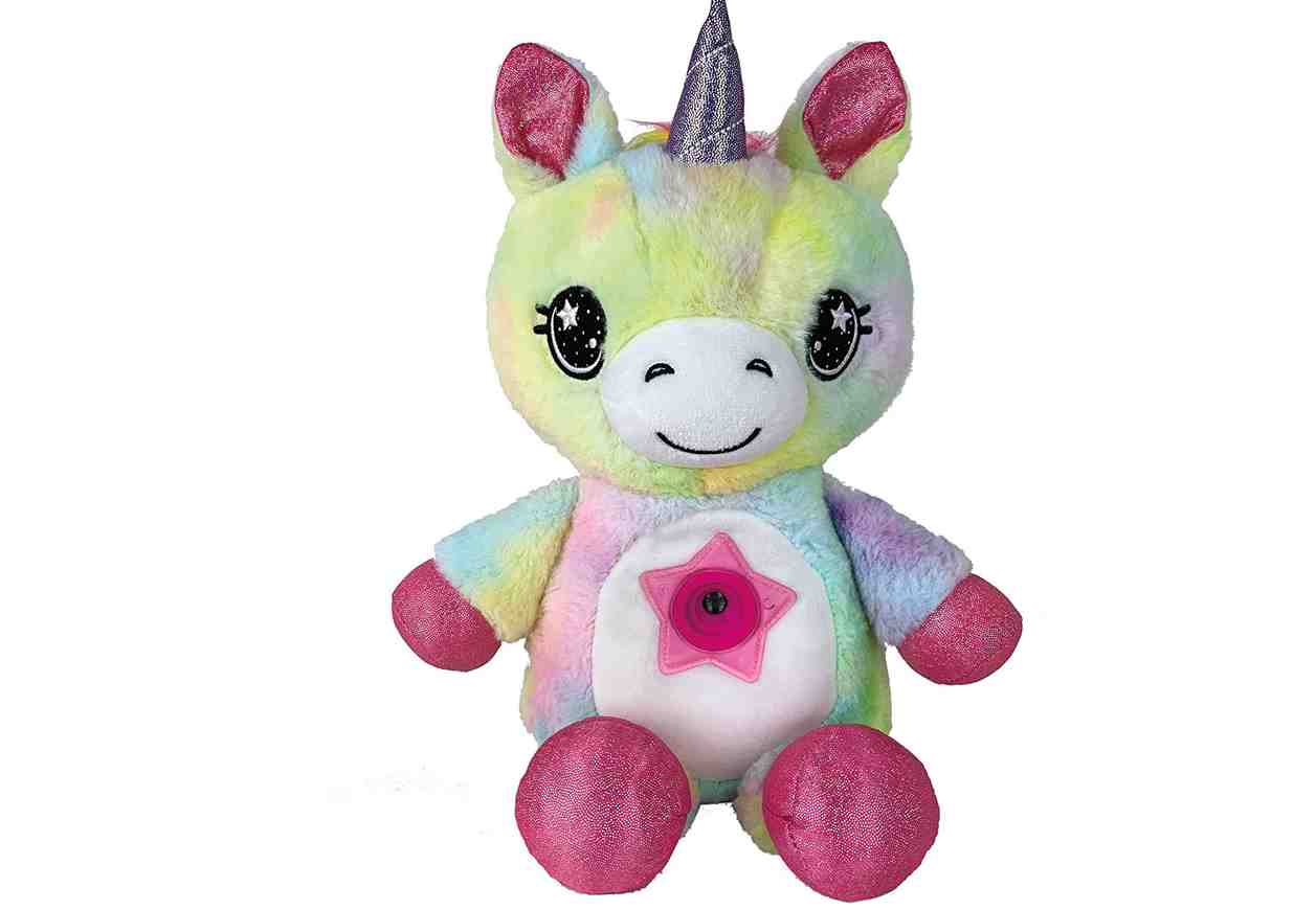 - Un arcobaleno di colori: il tuo bambino adorerà coccolarsi con il suo peluche amico giorno e notte. La semplice pressione sulla pancia cambia la luce in sei diversi colori. Scegli un unicorno, un cucciolo, un gattino o un dinosauro