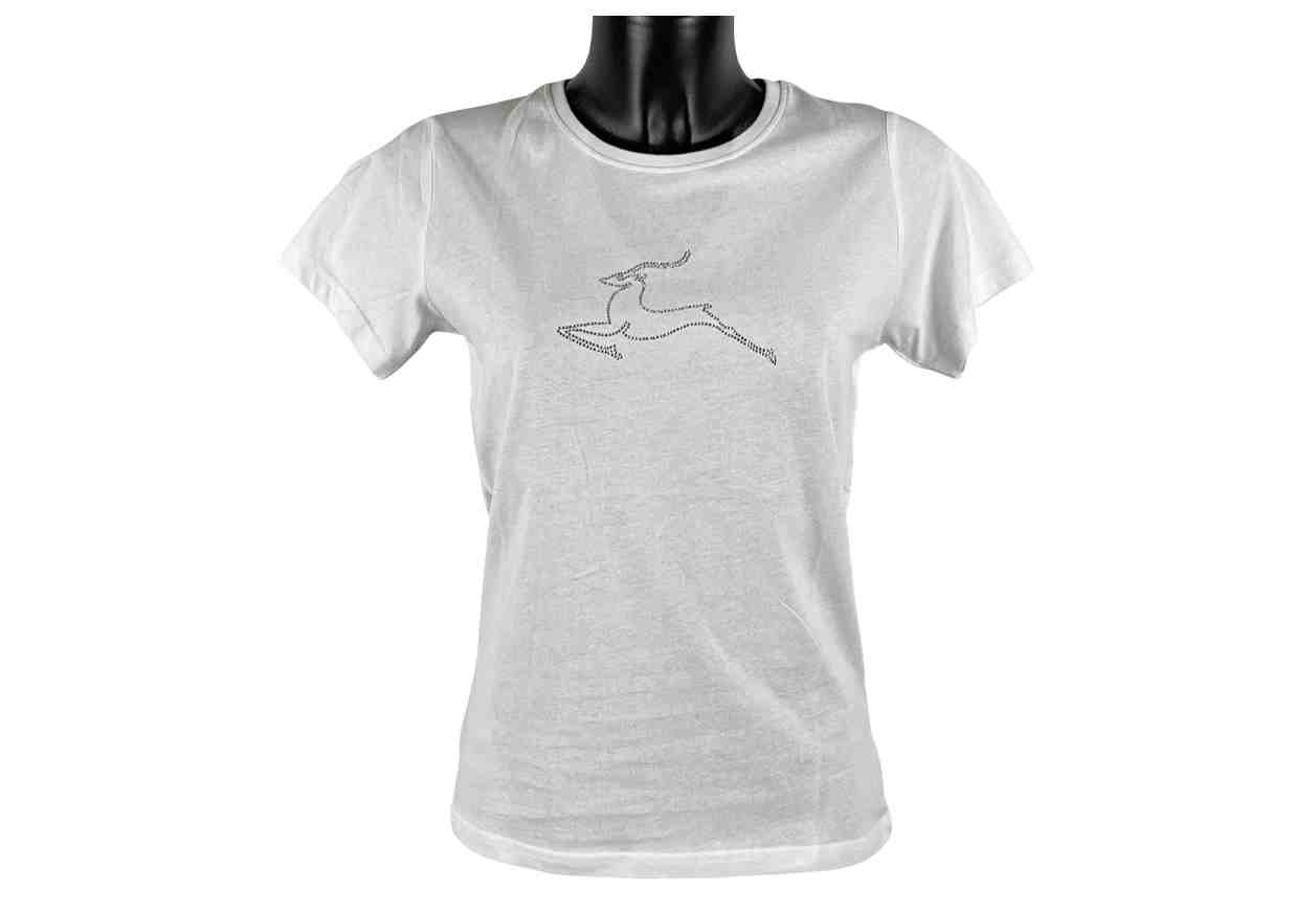 T-shirt donna 100% cotone con logo del brand in strass termosaldati.