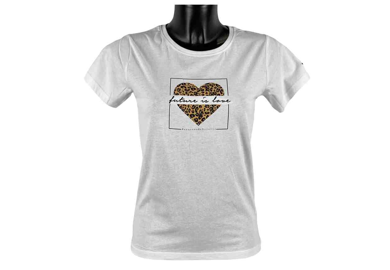 T-shirt donna in 100% cotone con cuore stampato e scritta ‘future is love’.