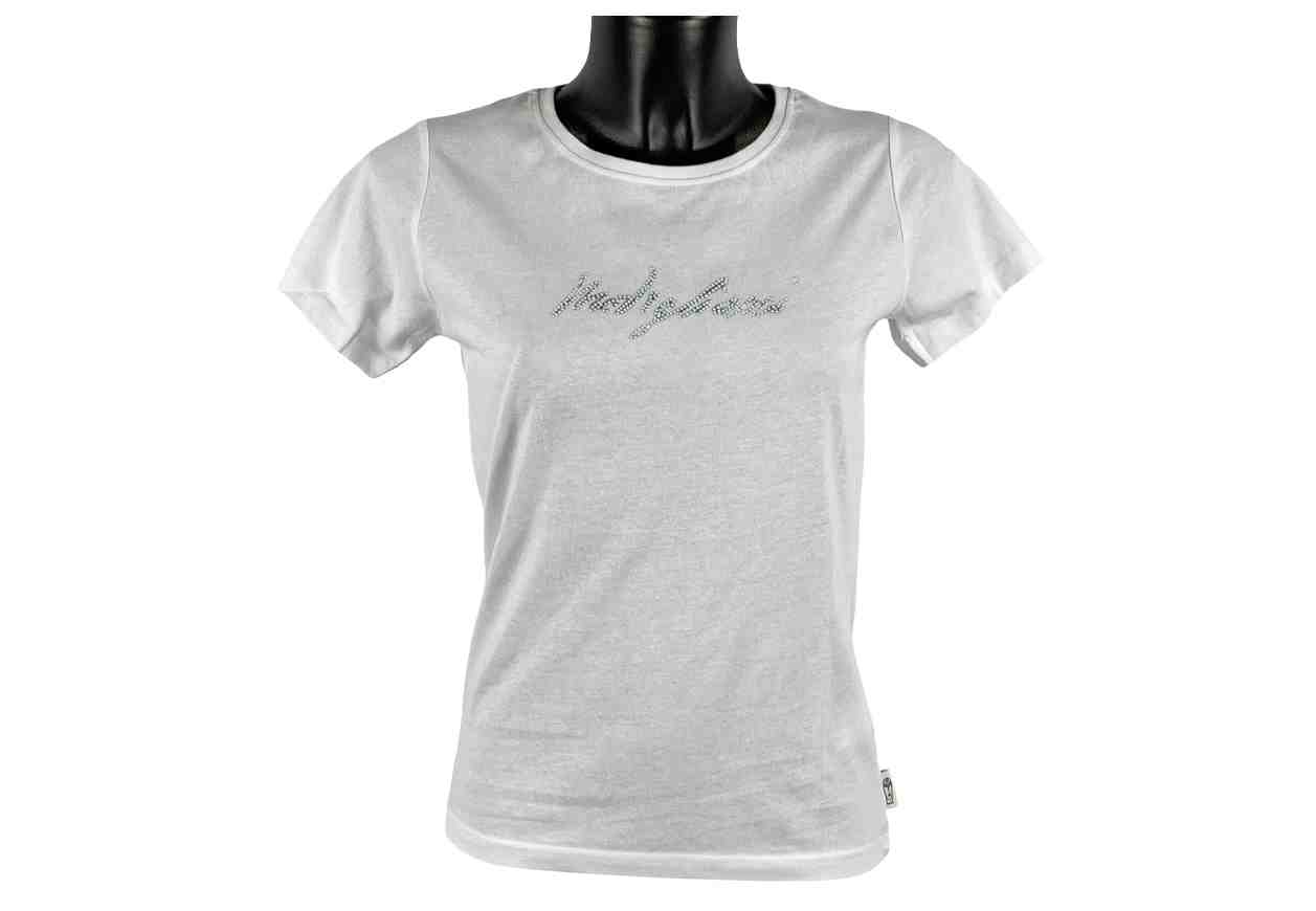 T-shirt in 100% cotone girocollo logo con strass termosaldati.