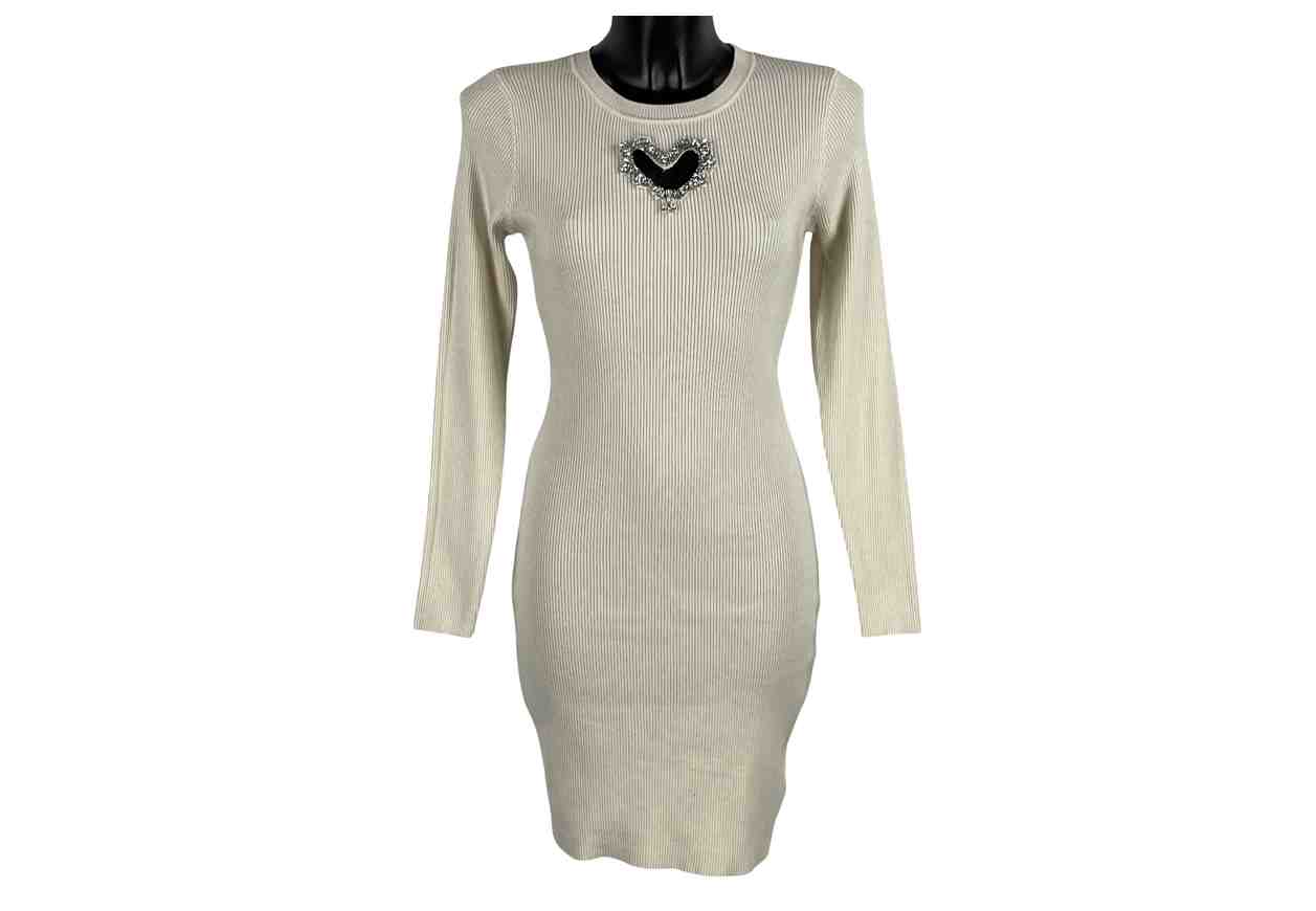 VERONICA RIZZI Abito a costine con taglio a cuore frontale e strass