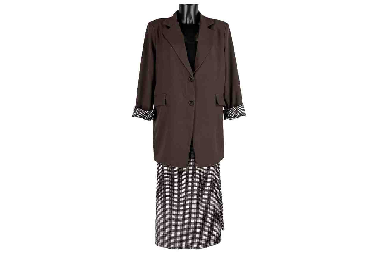 VERONICA RIZZI Completo in fantasia pois: giacca e gonna.