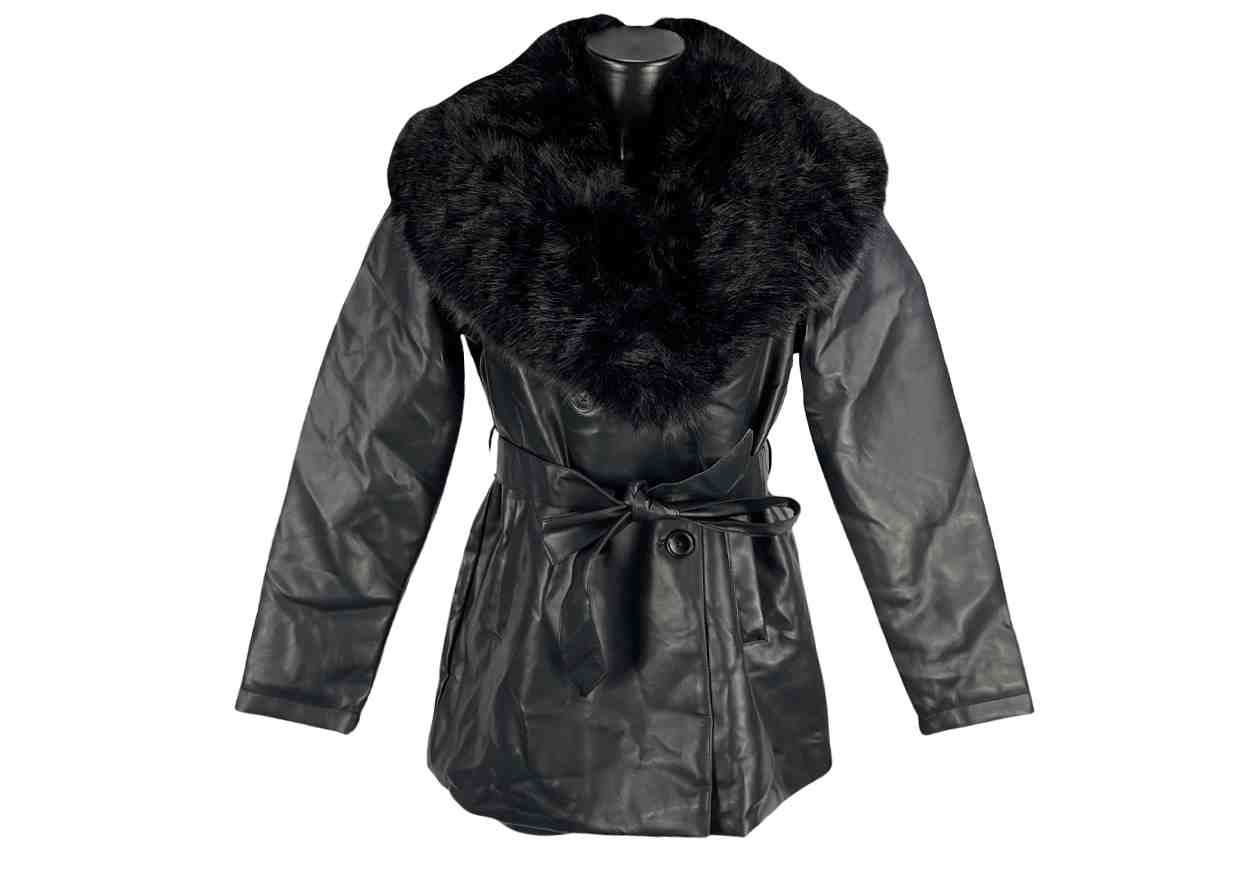 VERONICA RIZZI Giacca in ecopelle con collo in ecopelliccia, tasche e cintura in vita.