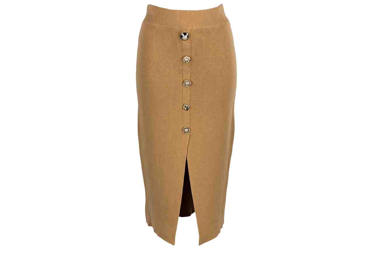 VERONICA RIZZI Gonna in maglia con bottoni goielli frontali e spacco.
