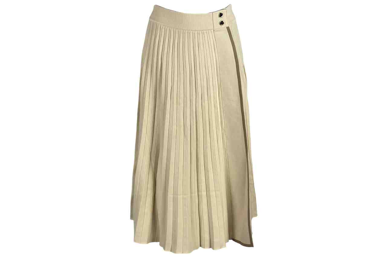 VERONICA RIZZI Gonna plissettata in tinta unita con elastico in vita e dettaglio bottoni applicati.