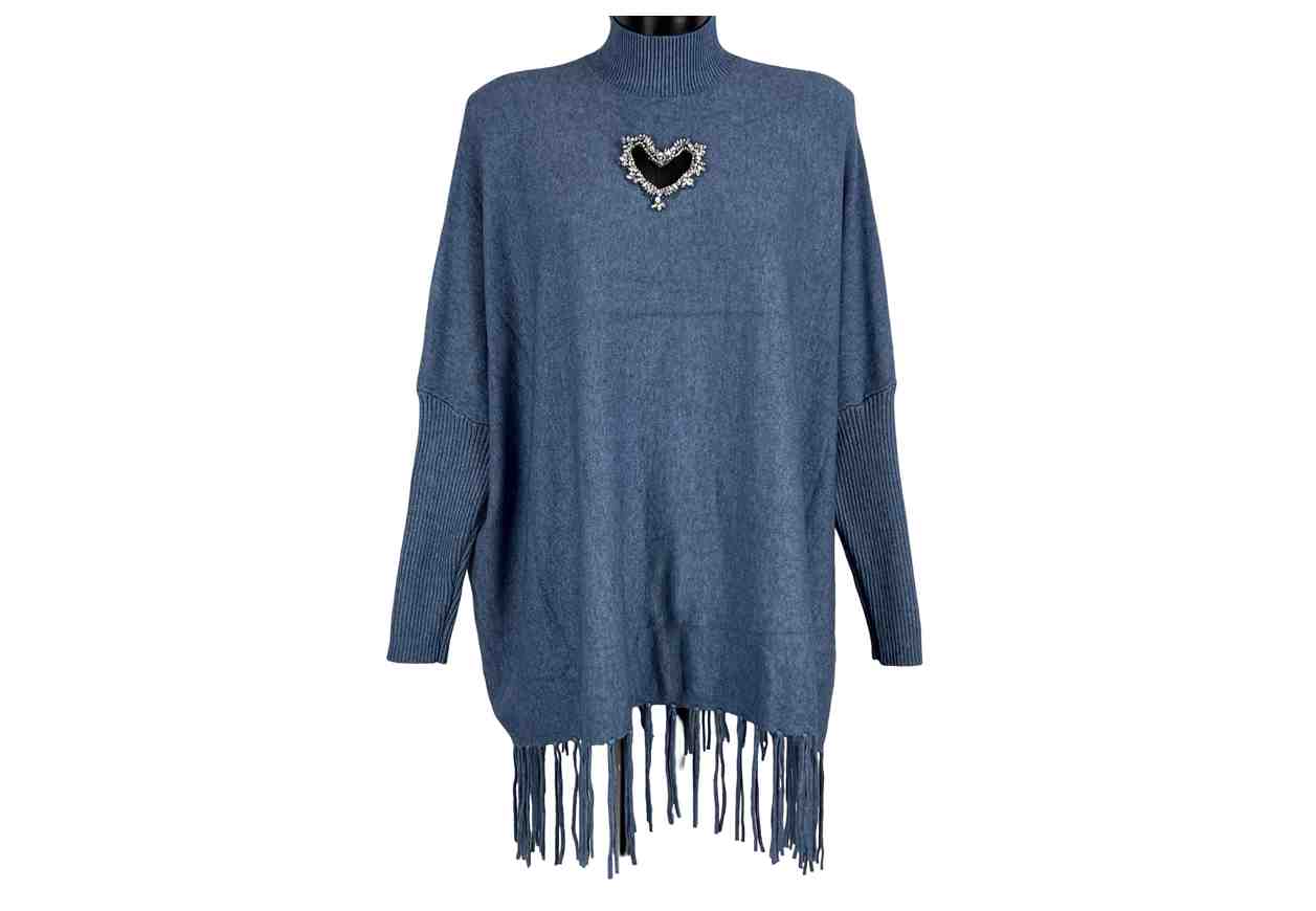 VERONICA RIZZI Maglia con taglio a cuore frontale e strass, frange sul fondo, tinta unita.