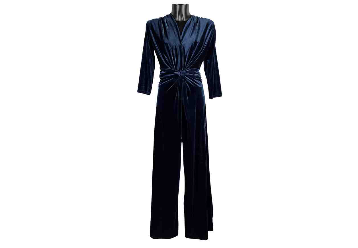 VERONICA RIZZI Tuta in simil velluto con scollo a V e arricciatura in vita.
